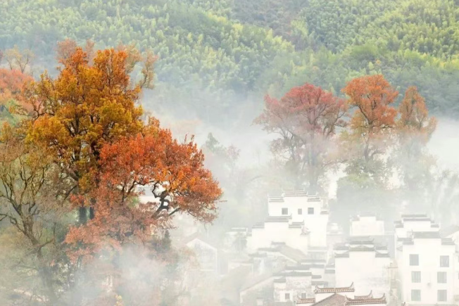 早晨起来,一股带有成熟果实味的新鲜空气沁人心扉,觉得是那样的爽适和舒畅。整个村子是寂静的,时而听到几声雄鸡的晨鸣。此时向村中眺望,每家屋顶上炊烟袅袅,灰白色的烟气和晨雾融合在一起,飘飘荡荡,盘旋升腾,呈现出一派诙谐的景色。