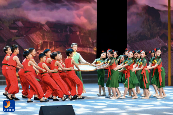 ▲通山县迎宾路小学原创民俗节目《打糍粑》