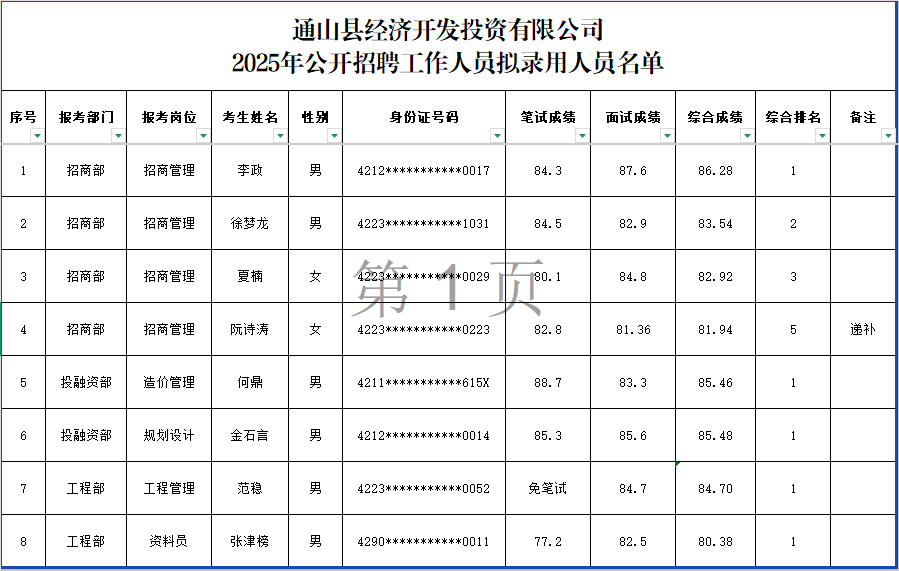 附件:通山县经济开发投资有限公司2025年公开招聘工作人员拟录用人员名单