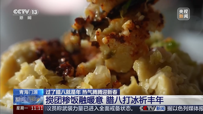 在青海海北藏族自治州门源回族自治县,当地群众在腊八则延续着制作“搅团糁饭”、打“腊八冰”的独特传统,以一暖一寒的民俗仪式,寄托对团圆和睦、丰收吉祥的朴素期盼。