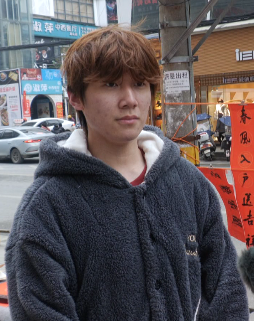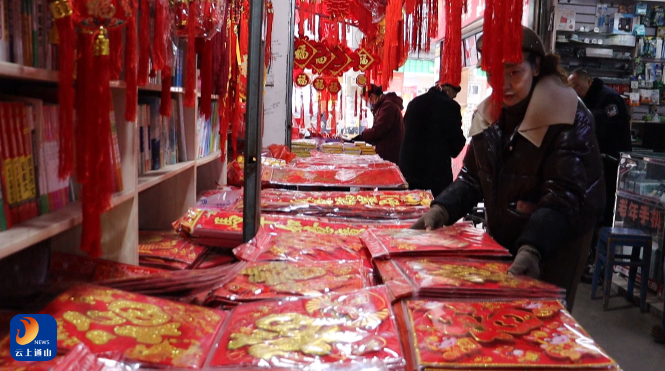 我们现在卖(的)年货,灯笼、福字、对联、日历、挂历之类的买得最多,到了二十以后人流量就很多了,生意就比较好。