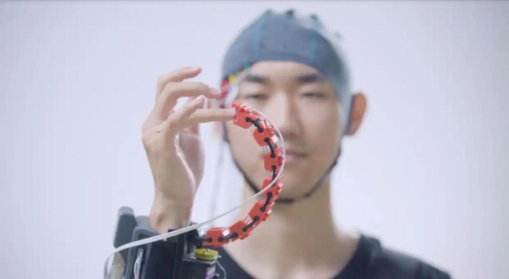 天津大学脑机海河实验室团队研发的无创脑机接口康复系统“神工—灵犀指”。受访者供图