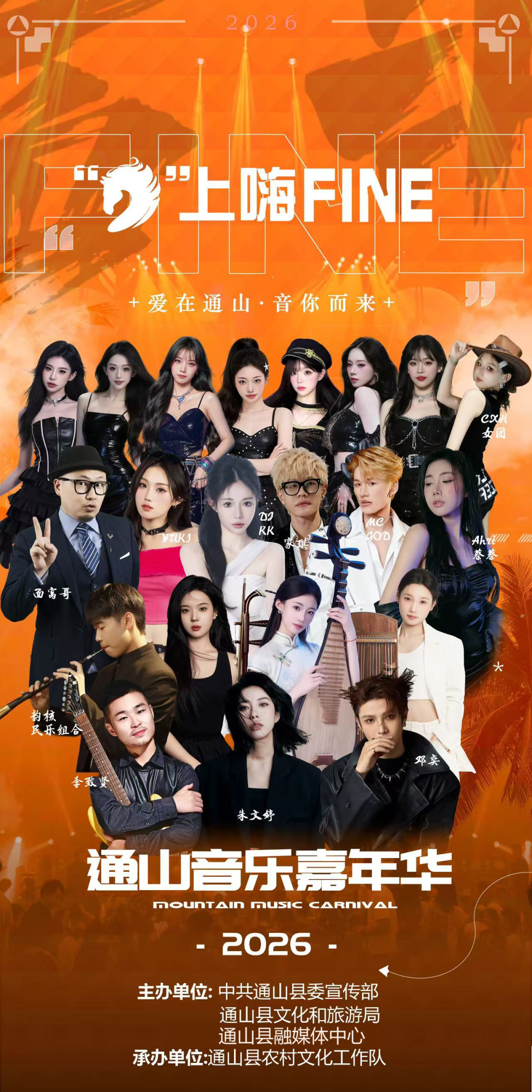 由县委宣传部、县文旅局等单位主办,属于新春惠民年俗类活动,邀请《中国好声音》实力唱将朱文婷及多支乐队登台表演,涵盖经典老歌、流行热歌、民乐演奏等节目,现场设置“我和通山”打卡墙、小吃集市、祈福许愿树等配套场景,市民可通过简单任务获取门票或直接进入大众观演区,在音乐盛宴中感受新春热闹氛围,寄托新年美好祝福。