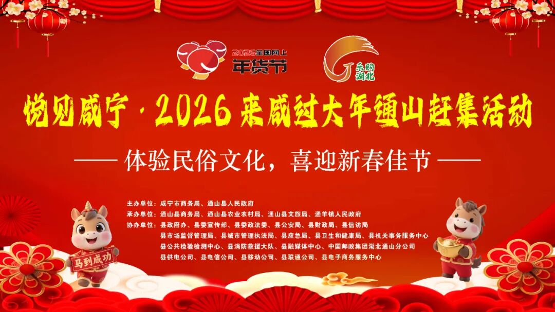 纳入咸宁市“悦见咸宁·2026来咸过大年”赶集系列活动,以“惠民、乐民、便民”为宗旨,汇聚通山本地农特产品、手工艺品、年货等,同步搭配民俗展演、趣味互动等环节,打造“一站式”新春消费与年俗体验场景,让群众在赶集过程中感受传统年味,共享新春消费红利。