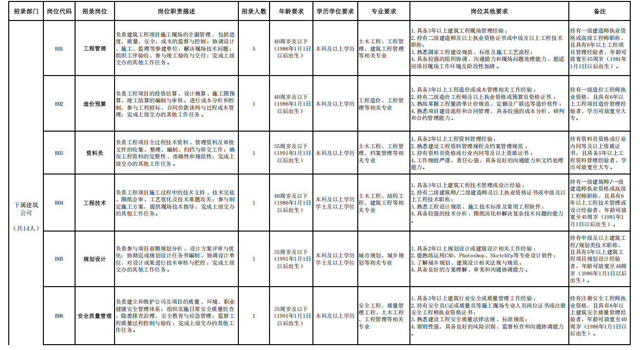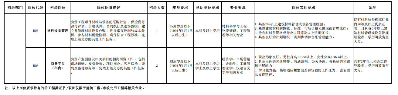 1.持有岗位相关一级建造师、一级造价工程师、一级建筑师、注册安全工程师、注册会计师、税务师、法律职业资格等高含金量专业资格证书或具备相应专业高级职称者报考可不限专业,且可免予笔试直接进入面试环节(免笔试考生持有证书需对应岗位)。
