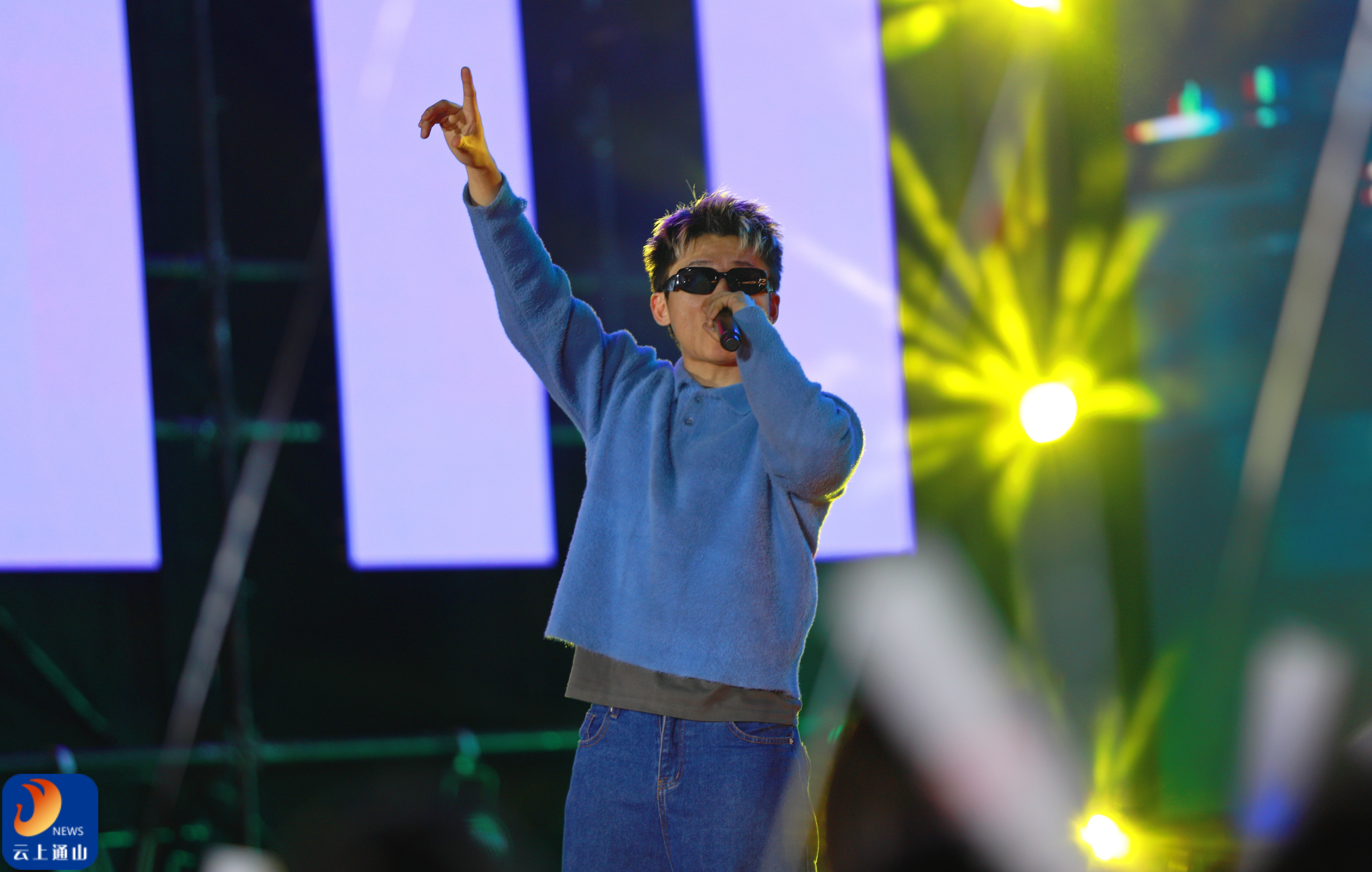 ▲歌迷们跟随节拍舞动手中的灯牌和荧光棒。