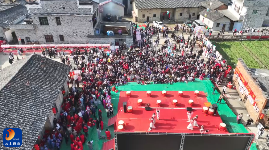 云上通山报道:(咸宁台记者 刘思祺 陈艺夫 金崇 通山台记者 王贤波 袁诚)腊月二十四,小年至,年味浓。在通山县洪港镇江源村,以 “看村晚、逛古村年货;燃篝火、迎盛世祥龙” 为主题的春节民俗文化活动热闹启幕。
