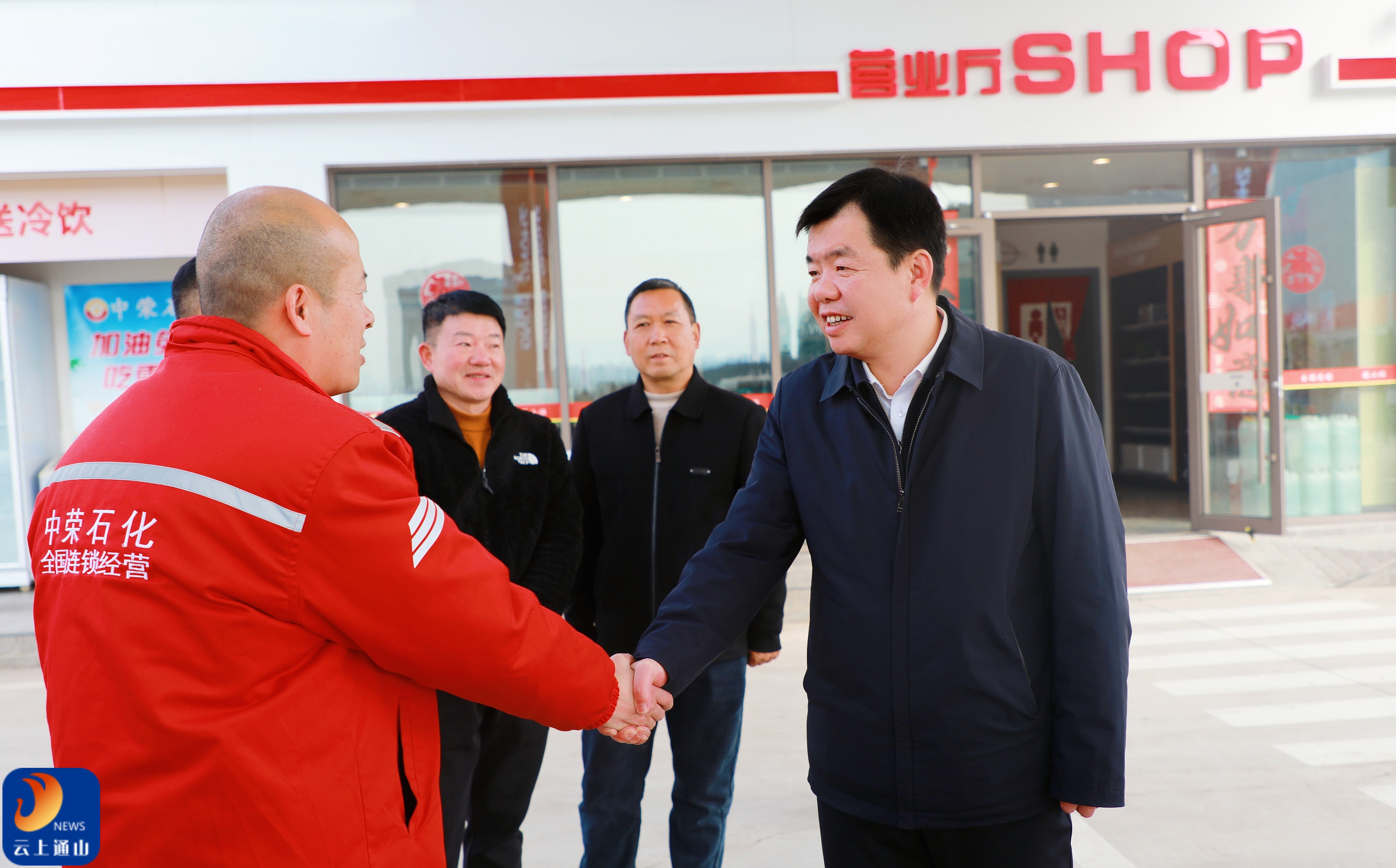 ▲在中荣石化加油站,吴涛实地了解企业安全生产经营、春节保供等情况。