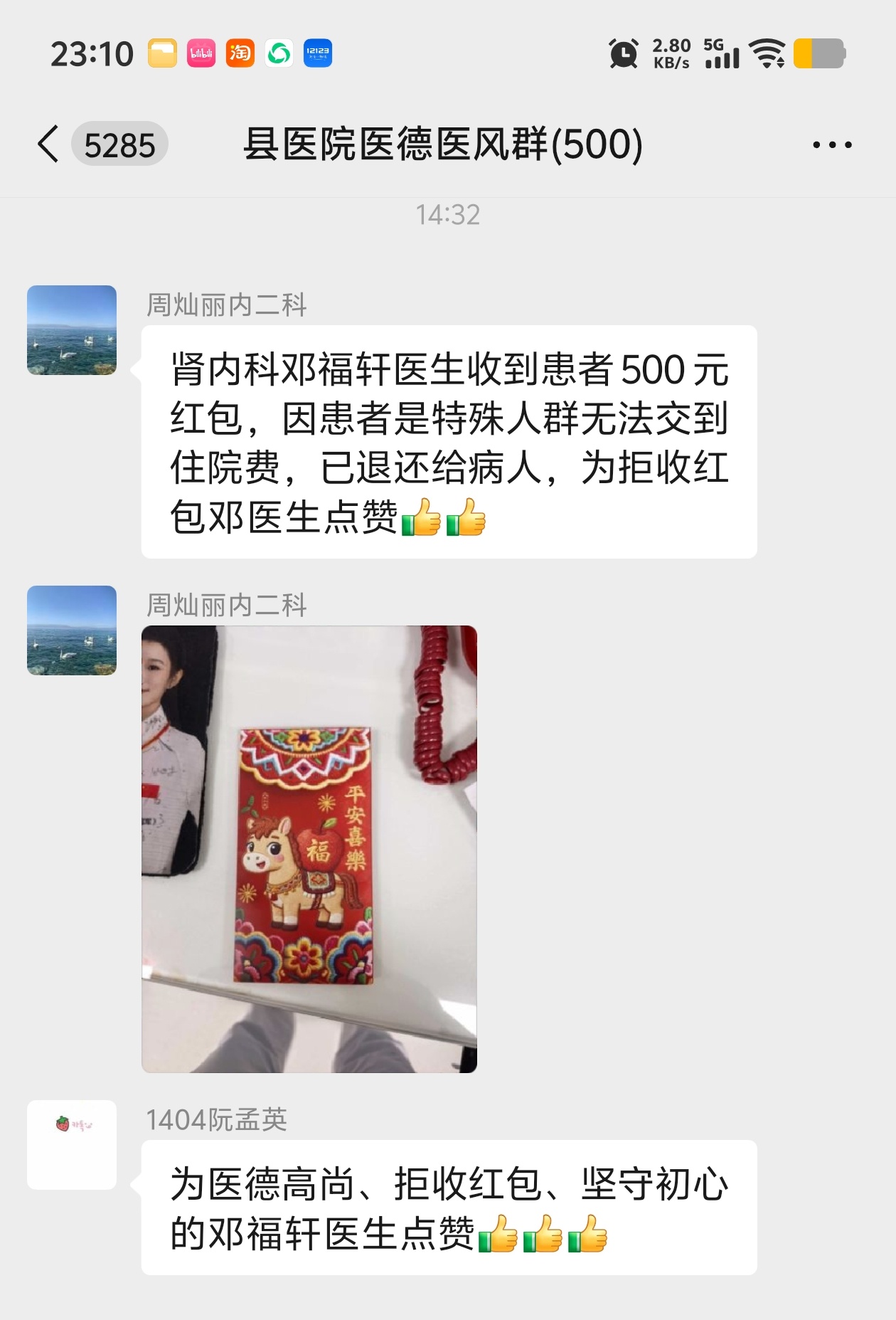 可家属的态度同样执拗,几番推让间,走廊里的空气略显凝重。“医生,你们太辛苦了,大年三十还守着我们,这只是我们的一点感激,不是别的意思。”家属的话语里,带着近乎恳求的真诚。
