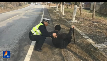 当车辆行驶至焦颜村路段时,民警发现一位老人摔倒在路边。他们立即停车上前查看,只见老人躺在地上无法起身。经询问得知,老人是出门散步时不慎摔倒。