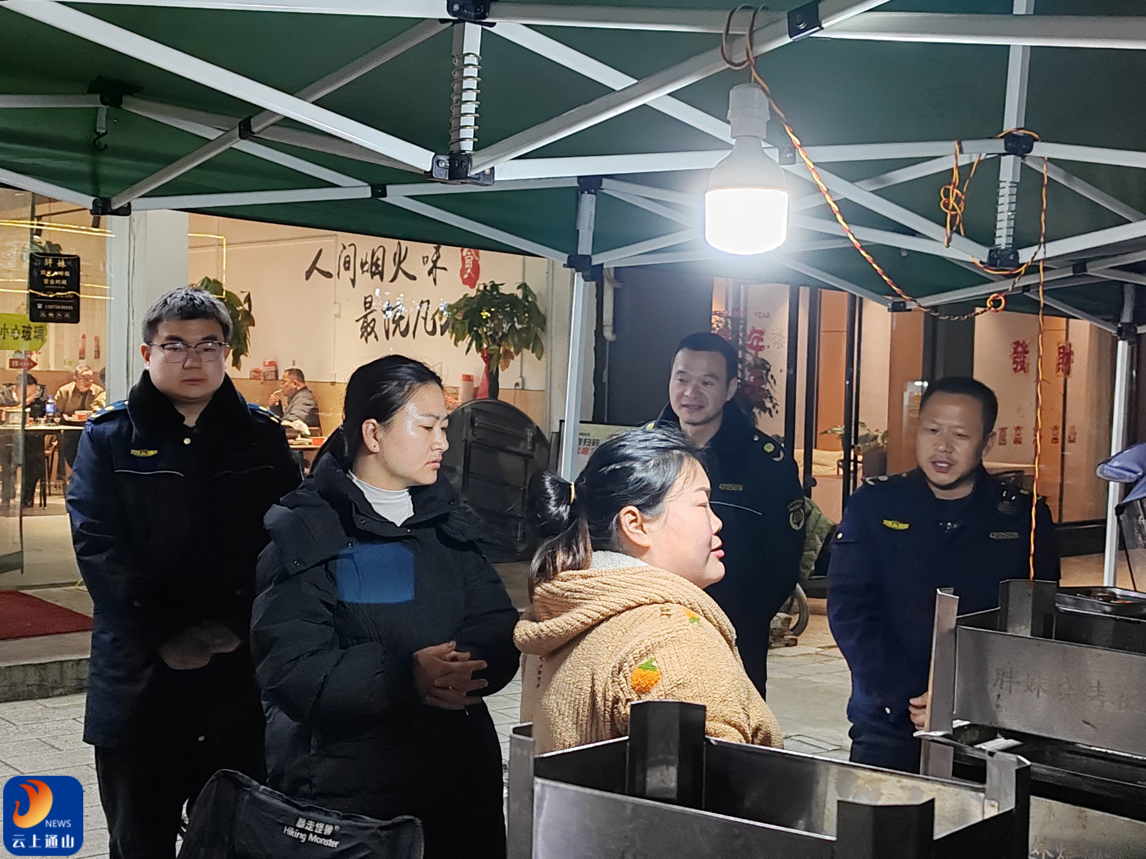 “新春第一会”强调要办实事、求实效。夜幕降临,当城市褪去白日的喧嚣,通山城管的执法队员们却踏上征途。针对春节后餐饮门店陆续复工、夜间经营活跃的特点,执法大队组建夜间突击队,采取“不打招呼、直奔现场”的方式,对重点路段、居民区周边的夜市摊点、餐饮商户进行拉网式排查。他们不仅检查油烟净化设施的安装使用情况,更深入后厨查看清洗维护台账,确保设备真正运行,不让“烟火气”变成群众的“窝心气”。