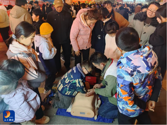 除了趣味灯谜,展台旁的应急救护知识普及体验区更是成为现场的“热门打卡点”。志愿者现场细致讲解应急救护技巧,并进行实操示范,生动易懂的讲解和直观的操作展示,吸引了不少少年儿童驻足观看,孩子们纷纷踊跃上手体验,在互动实践中掌握基础急救方法,提升自我保护能力。