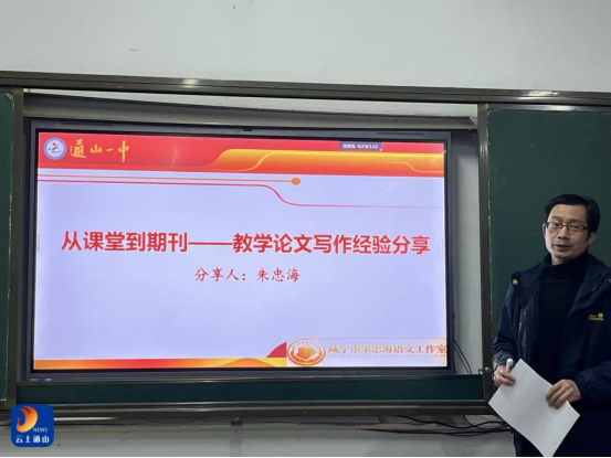 云上通山报道:(通讯员 舒钗)为充分发挥名师工作室示范引领与辐射带动作用,助力一线教师提升教学论文写作能力,实现教学实践与科研能力双向赋能,2026年3月5日,在通山一中语文组教研会上,工作室主持人朱忠海就教学论文写作经验进行分享,从写作意义、选题方向、撰写规范到实操技巧,进行全方位、系统性的讲解,为一线教师搭建起从课堂教学到期刊论文的桥梁,以专业赋能教师成长,以科研反哺课堂教学,充分彰显了工作室聚智、引领、赋能、共进的核心价值。