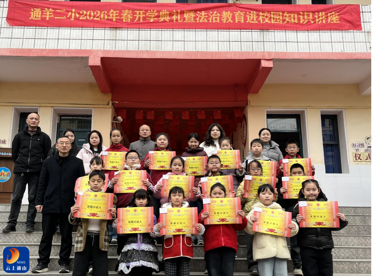 云上通山报道:(通讯员 袁涵)春回大地,万物竞发。3月6日上午,通羊二小全体师生满怀憧憬与喜悦,齐聚学校大操场,举行2026年春季开学典礼暨法治教育讲座。在庄严而热烈的氛围中,全校师生共同开启新学期的奋进篇章。
