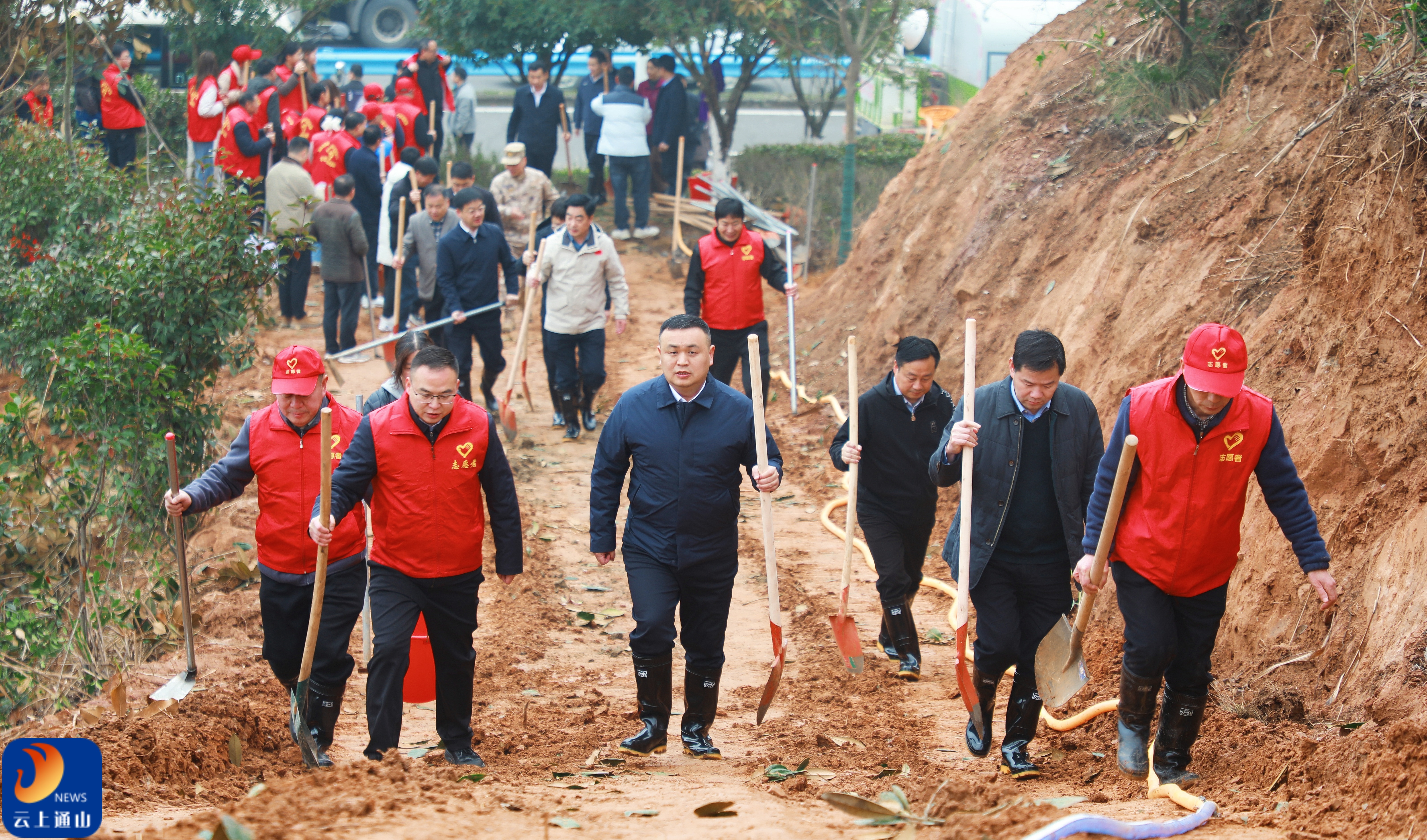 云上通山报道:(全媒体记者 唐成 伍文俊 徐剑)春回大地万物苏,植树添绿正当时。今年是开展全民义务植树运动45周年,也是我国第48个植树节。为积极响应“履行植树义务,共建美丽中国”的植树主题,3月10日上午,通山县2026年县直机关义务植树活动在大路乡洞口罗村火热开展。县委副书记、县长王功辉,县委副书记、通山经济开发区党工委书记廖旦,县政协主席杨烨,县委常委石聪、王知非、李荣机及县人大常委会、县政府、县政协领导班子成员同县直部门单位、大路乡全体干部职工等一同参加植树活动,以实际行动为通山大地再添新绿,助力“三区”建设。