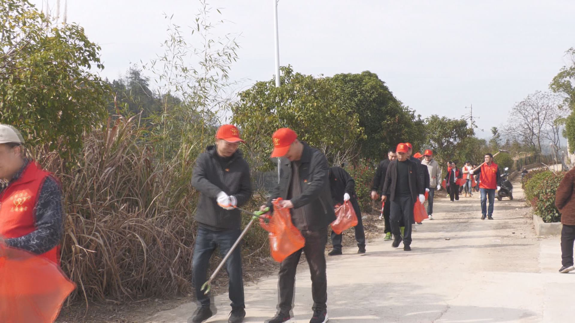 活动中,30余名身着红马甲的党员及志愿者,沿周家大屋小桥至湄港沈家小桥一线,对水源地保护区开展专项巡查。他们手持铁锹、镰刀、夹子与垃圾袋,重点清理沿线散落垃圾、修剪影响水质的杂草,并沿途悬挂水源保护宣传横幅,向周边群众普及水源地保护政策。一抹抹“志愿红”躬身忙碌的身影,在初春的水岸构成一道亮丽的风景线,以实际行动诠释了守护绿水青山的责任与担当。