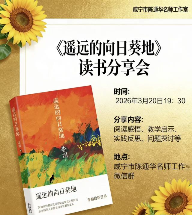 云上通山报道:(通讯员 熊颖)龙抬头焕新章,春分日润书香。恰逢春明向阳之时,为厚植教师文学素养,赋能课堂育人,3月20日晚,咸宁市陈通华名师工作室以云端联动形式,举办寒假共读《遥远的向日葵地》主题分享会。工作室成员相聚线上,共品李娟散文的质朴诗意,共探文本背后的生命力量,在文字魅力与教学思辨的碰撞中,凝聚专业成长合力。
