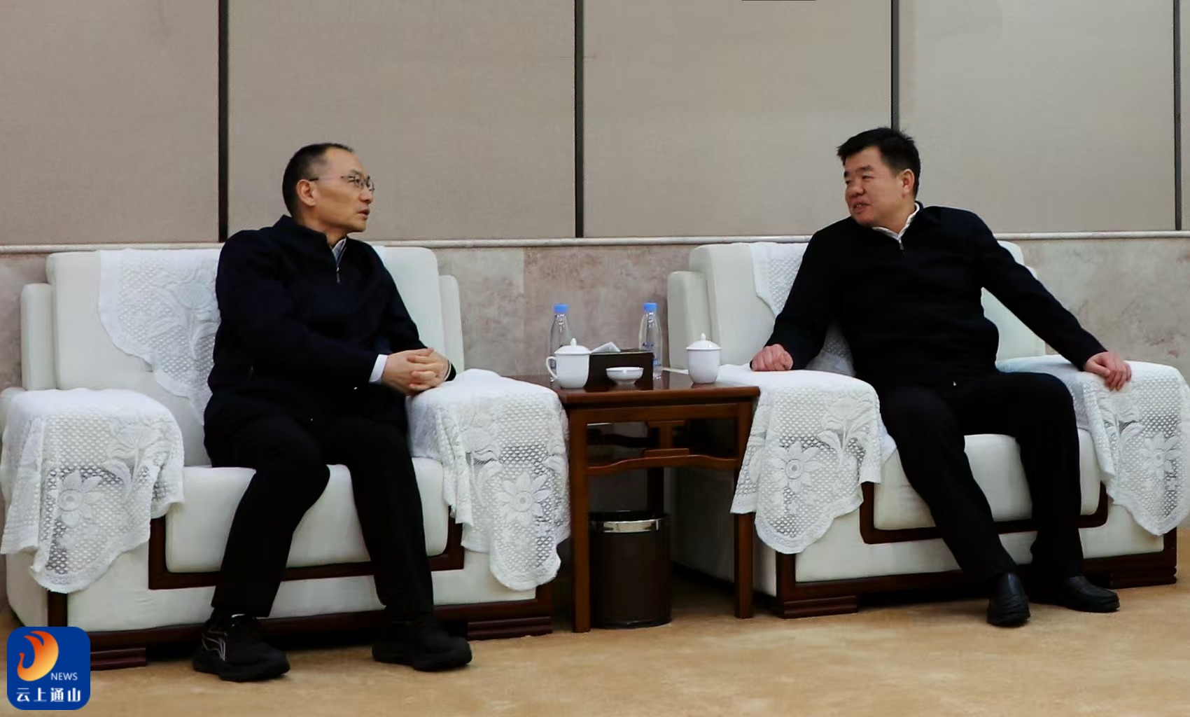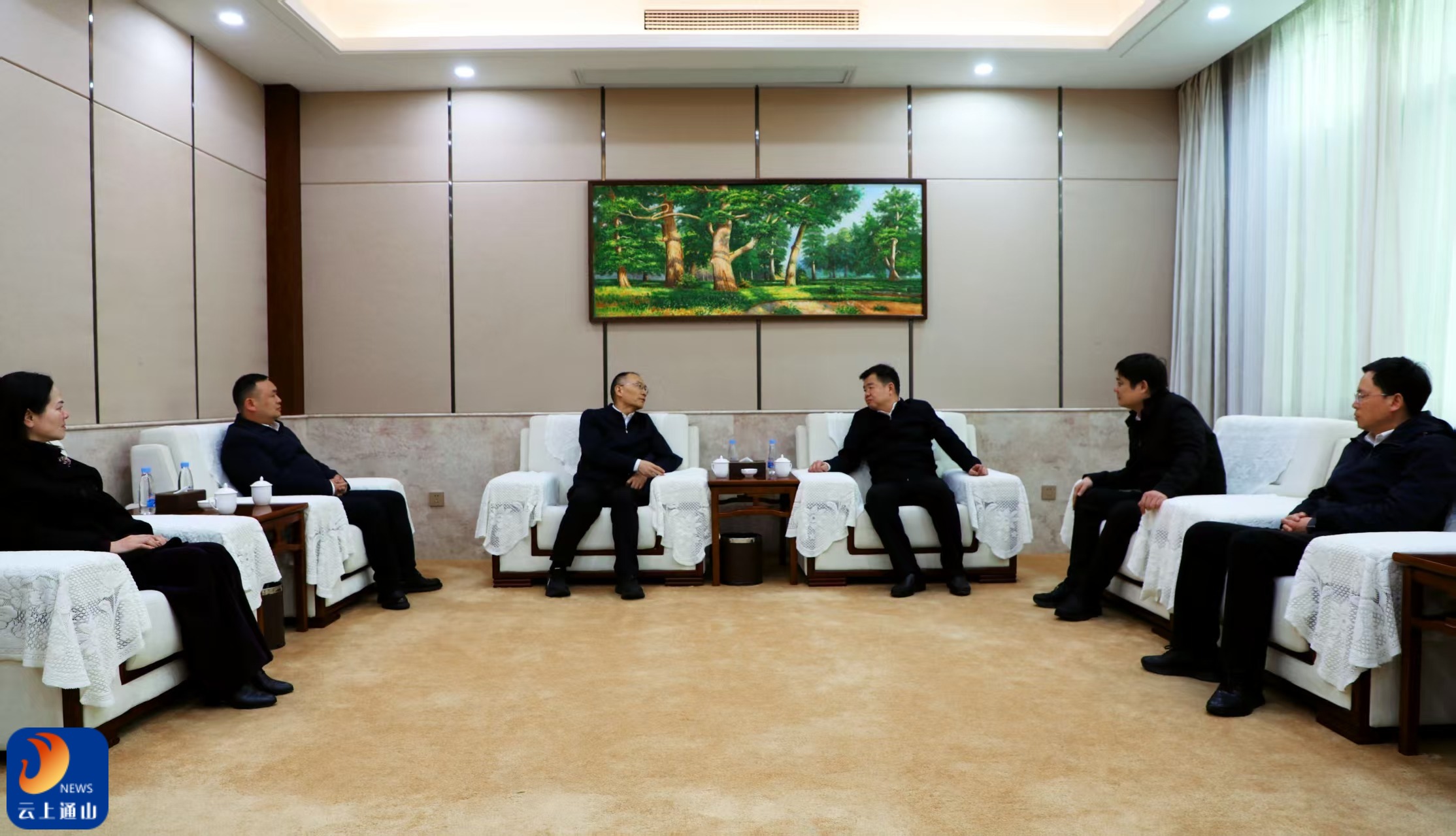 云上通山报道:(全媒体记者 伍文俊 袁诚 徐聂)3月31日,中国联通湖北省分公司党委书记、总经理陈德富一行来我县调研产业发展情况,共商智慧赋能助力“双20”县域经济。县委书记吴涛,县委副书记、县长王功辉,中国联通咸宁市分公司党委书记、总经理刘睿,县人大常委会主任徐丽华,县委常委、常务副县长张敏,副县长孔凡定参加座谈会。