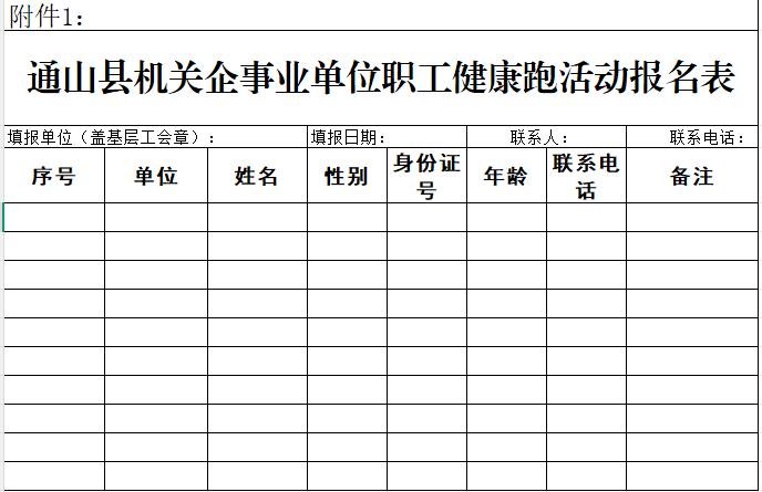 1.通山县机关企事业单位职工健康跑活动报名表