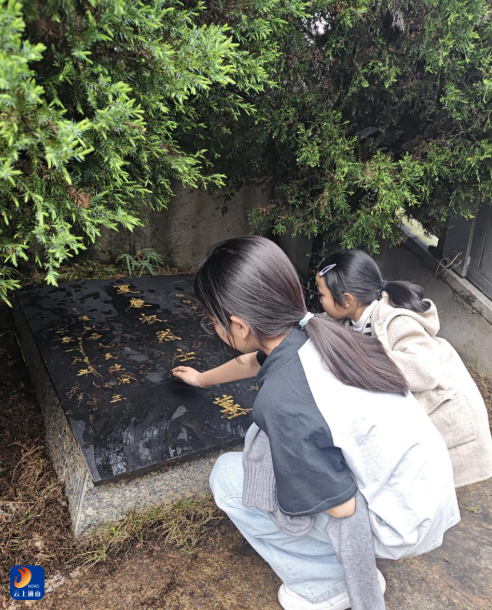 默哀结束后,学生们轻轻走到墓碑前,怀着诚挚的心意,将小白花轻轻放在碑前,一朵朵洁白的小花,寄托着孩子们对先烈的无限哀思与敬仰之情。鲜花后,学生们又小心翼翼地擦拭墓碑上的落叶,每一个动作都饱含敬意,仿佛在与先烈进行心灵的对话。