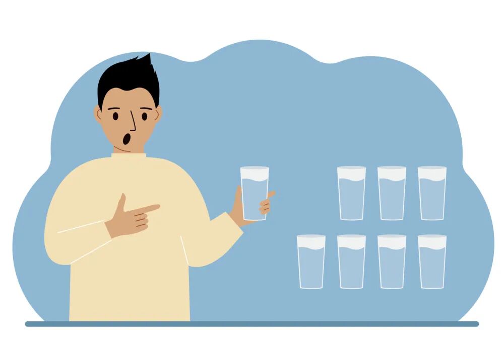 关于 8 杯水的说法,最大的问题是杯子容量有多大。如果以一个 300 毫升的杯子计算,男性每天喝水约 6 杯,成年女性则为 5 杯水。所以只记得是“八杯水”并不准确,还是要记得喝水量,或者可以根据自己杯子的容量,换算出几杯水。