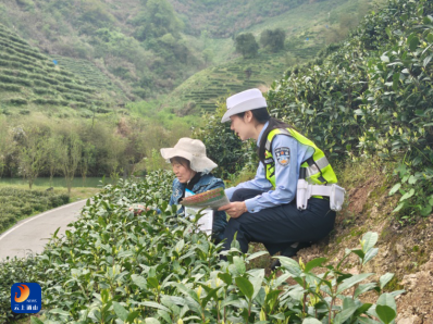 “大姐,您每天骑电动车来茶园上班,一定要把安全头盔戴好,这可是保护咱们头部的‘保命盔’,千万不能图省事就不戴!”针对基地务工人员多驾驶摩托车、电动车往返田间,以及茶叶运输车辆行车安全等问题,民辅警们一边发放宣传手册,一边面对面以案释法、现场答疑解惑。