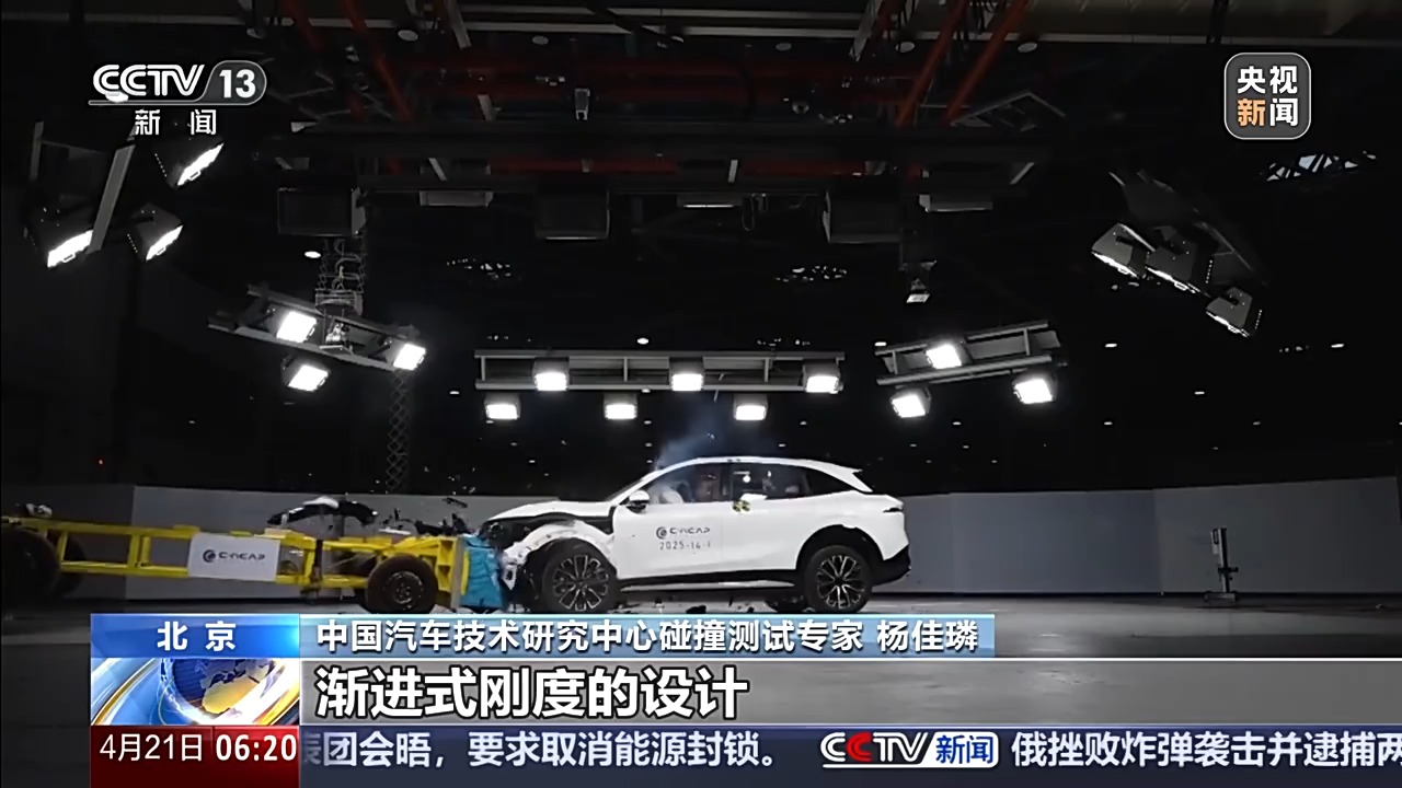 中国汽车技术研究中心碰撞测试专家 杨佳璘:首先是重量,从以前的1.4吨提升到了1.55吨,主要考虑到新能源车辆的销量包括渗透率,都在不断地提升。也从前到后进行了渐进式刚度的设计,更好地符合车辆发展的趋势。