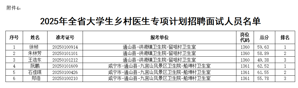 4.2025年全省大学生乡村专项计划招聘(通山县岗位)面试人员名单