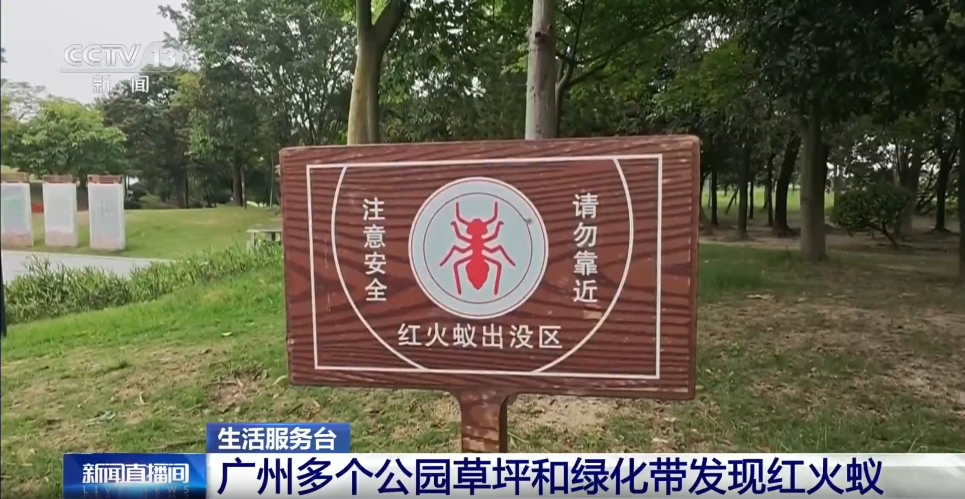 近期,广州市多个公园的草坪和绿化带中发现了红火蚁。目前,相关单位正开展消杀工作,提醒市民外出注意防范。