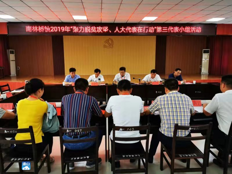 在南林桥镇政府会议室,丁小强听取各分队联络员走访贫困户及意见建议汇总情况。针对代表小组活动中形成的成立劳务服务公司、乡村垃圾分类等问题,丁小强和代表们一起认真讨论。