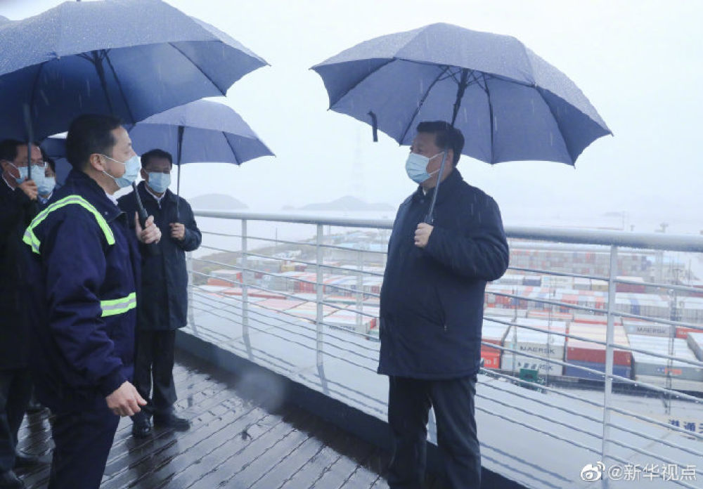 【习近平在浙江考察调研】习近平总书记29日在浙江考察调研。当天下午,他先后来到宁波舟山港穿山港区码头、北仑大碶高端汽配模具园区,了解港口和园区企业复工复产情况。(记者:张晓松、杨维汉、朱基钗)