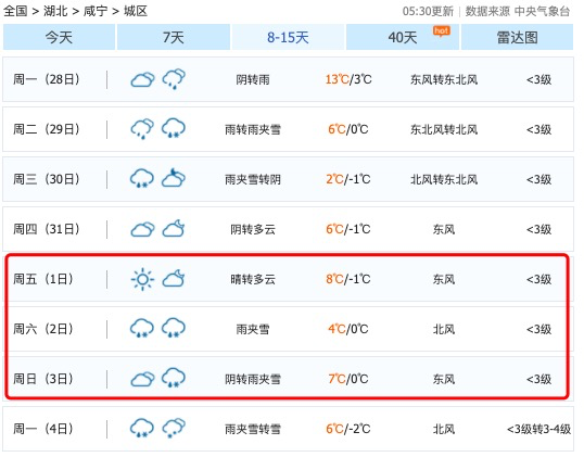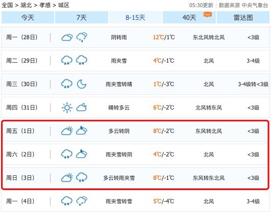 湖北元旦假期期间天气情况
