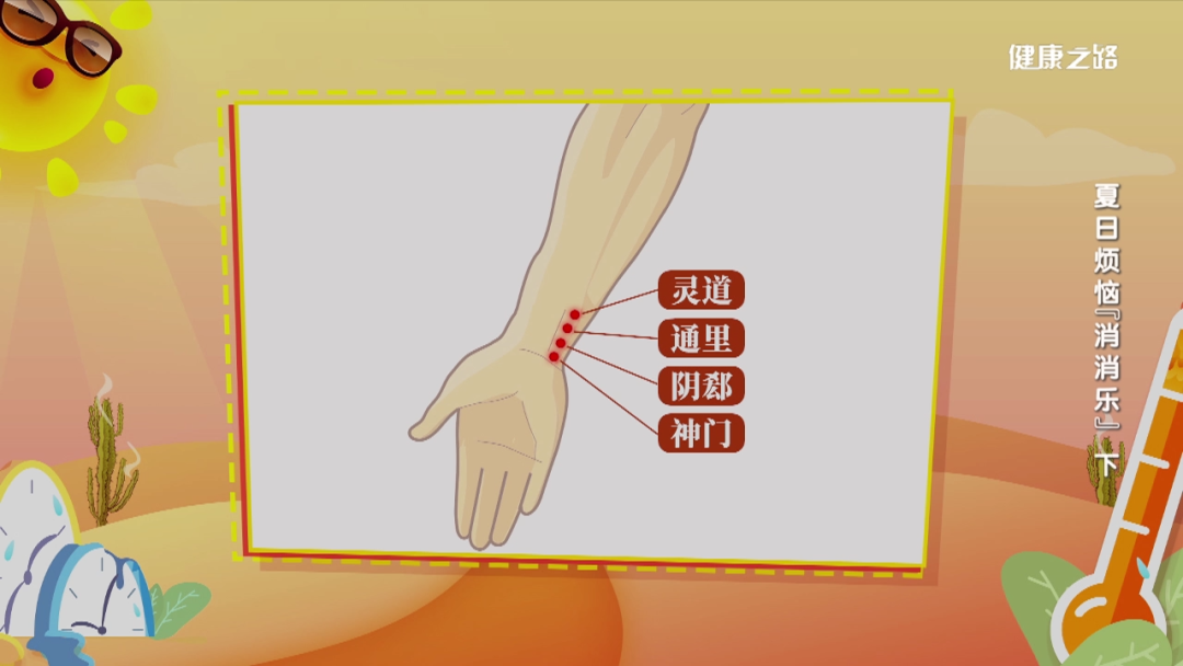 神门、阴郄、通里、灵道,这四个穴位是手上的心经,由神门穴至灵道穴轻推20-30下,左右手交替。推按时尽量闭目,可以起到养心、助睡眠的效果。