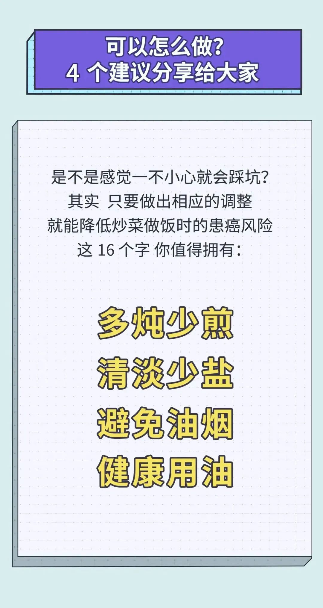 【健康养生172】5 种易致癌的做菜习惯,你家中了几个? 云上通山——通山县融媒体中心 2021-08-11 09:46 0 上次在家吃饭,是什么时候? 在家吃饭,对于很多中国人来说,不仅代表着安全、健康,还代表着一家人团聚的温馨时光。 然而令人想不到的是,在飘香的厨房、翻炒的锅灶里,藏着致癌隐患。 这些做菜习惯,很多家庭里都有。每一次做菜,它们都在悄无声息地伤害着我们的家人。 的确,以上都是炒菜过程中的一些小细节,但只要注意了,就可以降低癌症风险,何乐不为呢? 如果你是家里的掌勺人,请保护好自己,别让家人担心。 如果是其他家人在做饭,那快去提醒他注意一下这些小细节吧。 来源:丁香医生 (编辑:徐微 编审:唐成)