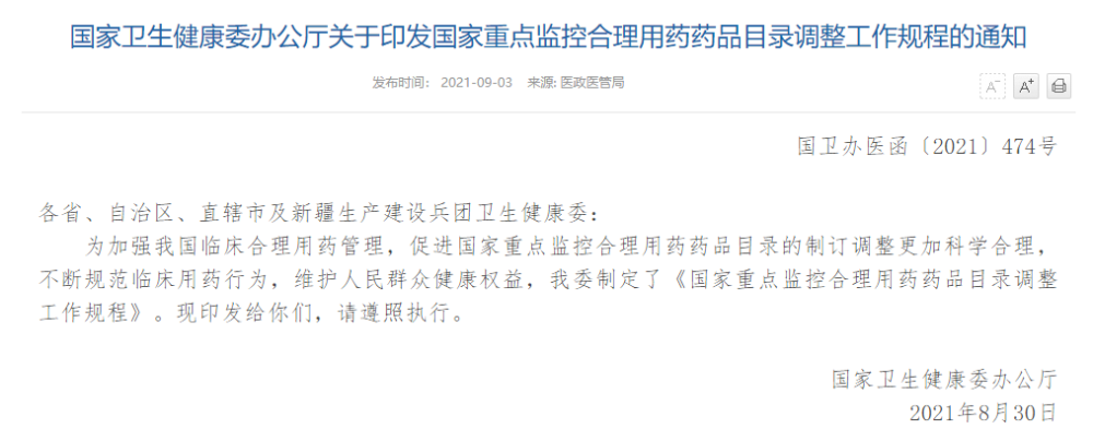 近日,国家卫健委发布“国家重点监控合理用药药品目录调整工作规程”的通知,有六类药物上榜“重点监控药品目录” 。