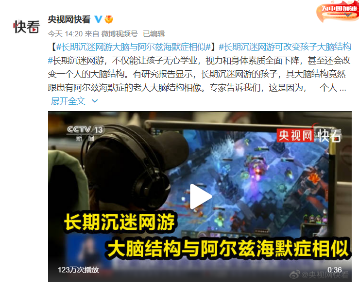 长期沉迷网游,不仅能让孩子无心学业,视力和身体素质全面下降,甚至还会改变一个人的大脑结构。有研究报告显示,长期沉迷网游的孩子,其大脑结构竟然跟患有阿尔兹海默症的老人大脑结构相像。专家告诉我们,这是因为,一个人在玩儿网络游戏的时候,处于被动接收信息状态,想象力,思考力和融会贯通的能力得不到训练,长此以往,会极大损害智力发展。