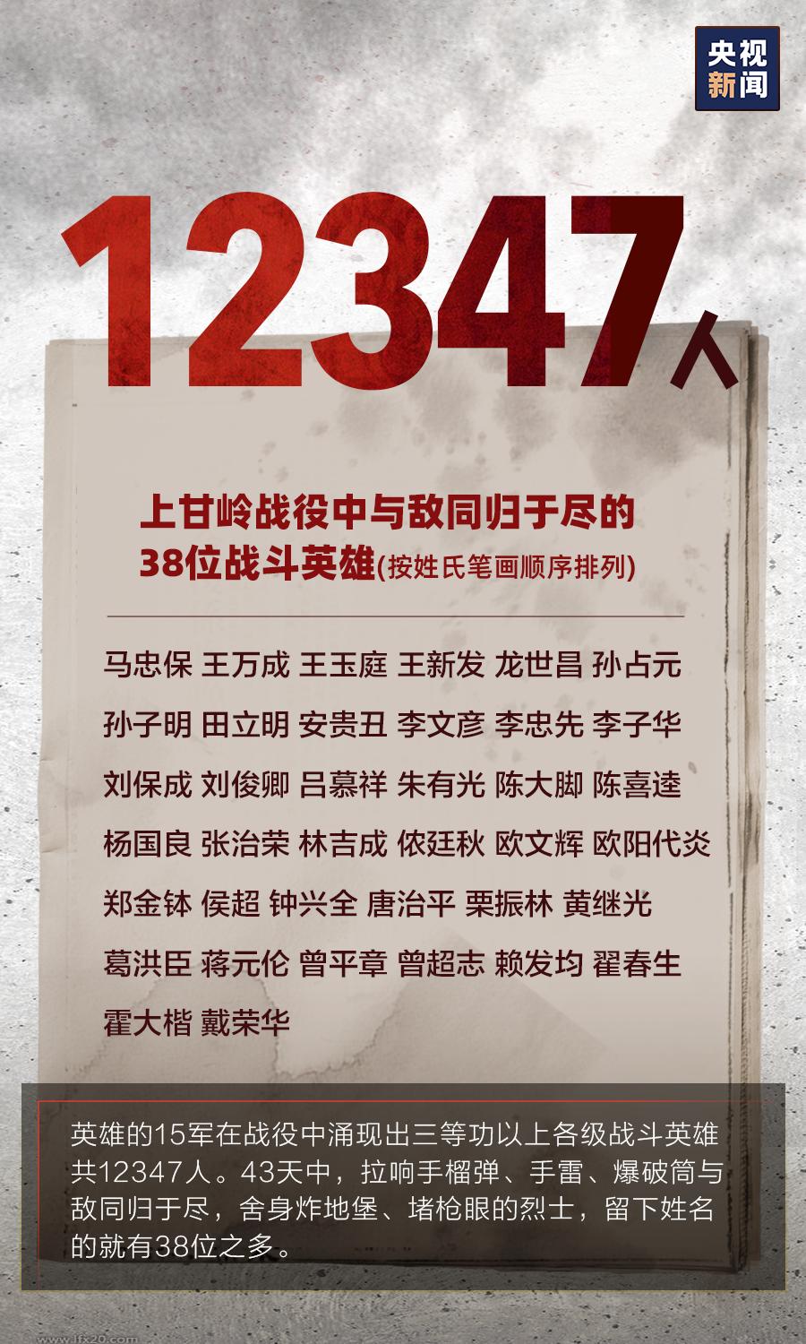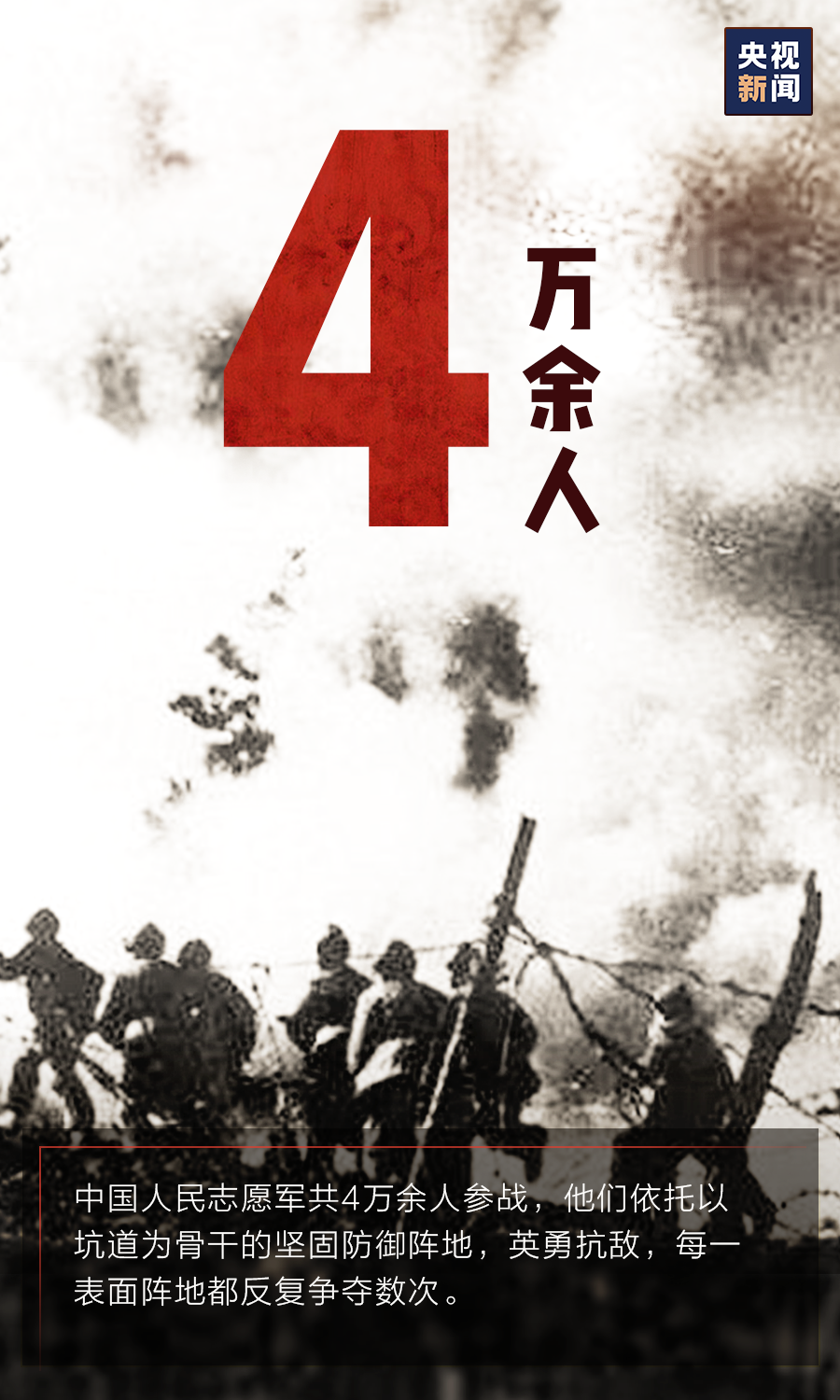 缅怀,致敬! 云上通山——通山县融媒体中心 2021-10-14 07:19 0 69年前的今天,上甘岭战役打响。中国人民志愿军在敌人猛烈的炮火中浴血奋战43天,终于将战旗插上了上甘岭的主峰,取得上甘岭防御战的彻底胜利。 今天,通过一组数字,一起重温伟大的上甘岭精神,致敬中华民族永远的精神高地! 来源:央视新闻