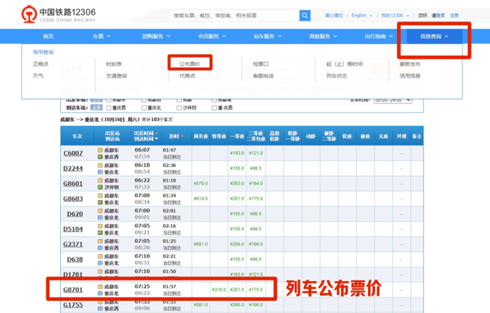怎么查看列车公布票价?