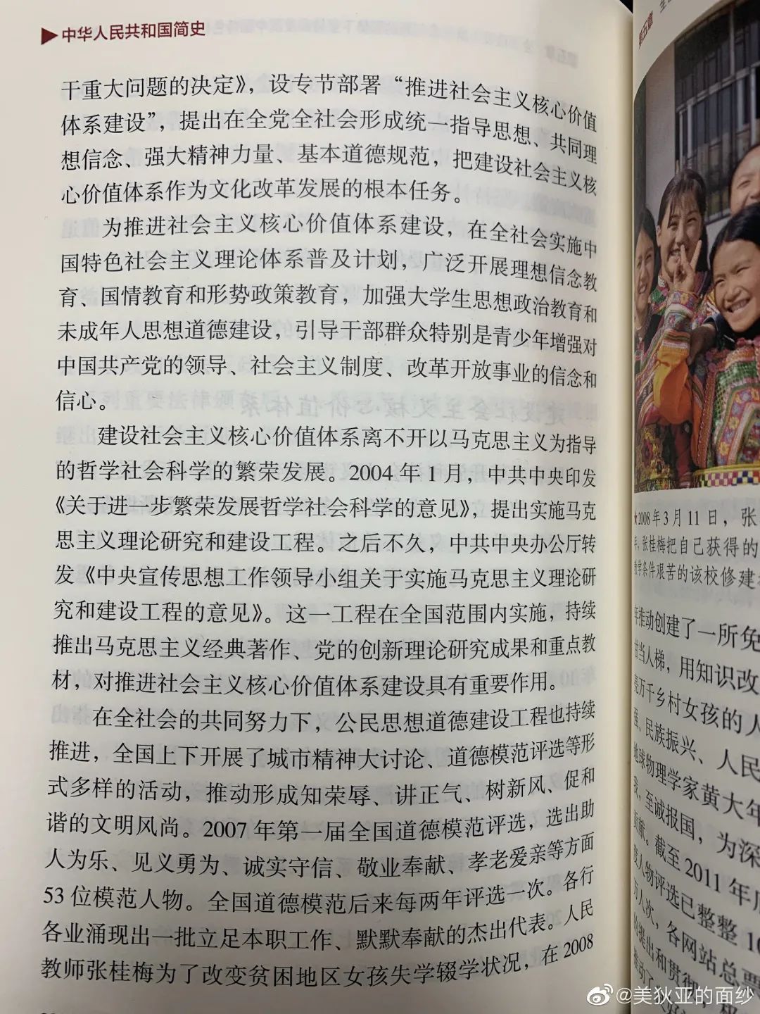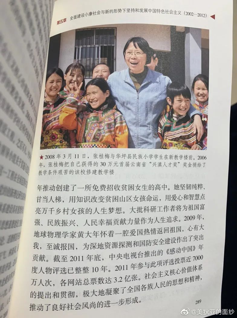10月21日,网友发现张桂梅老师被写进《中华人民共和国简史》(最新版)。