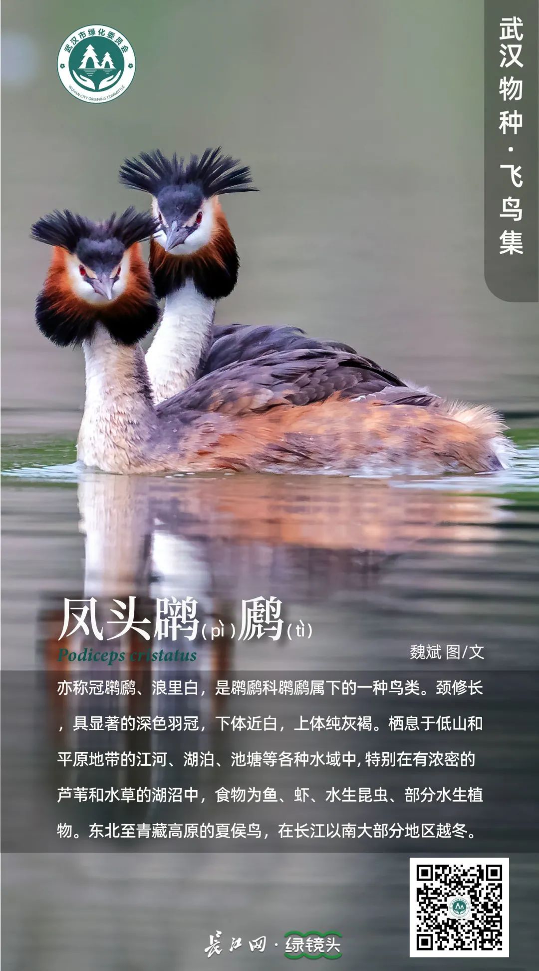 “凤头䴙䴘属于鸭科鸟类,鸭科鸟类都长得比较漂亮,身上颜色丰富,特别像大自然左一笔、右一笔勾画出的艺术品,协调、醒目。”颜军对鸭科鸟类称赞不已。