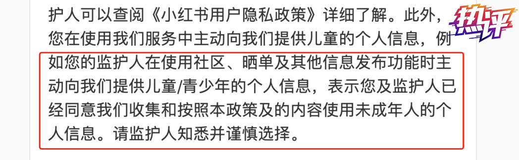 “保护未成年人合法权益”,这是明确写在“小红书”App社区规范中的内容。但看其实际操作——一边是App注册并无实名认证要求,一边是在其《儿童/青少年个人信息保护规则》协议中注明,“监护人在使用社区、晒单及其他信息发布功能时,如主动向我们提供儿童青少年的个人信息,表示已经同意我们收集和按照本政策的内容使用未成年人的个人信息。”此举无疑导致未成年人在该平台发布内容存在“监管真空区”,并把责任“甩锅”给未成年人的监护人,这也是造成目前内容审核问题频发的主要原因。
