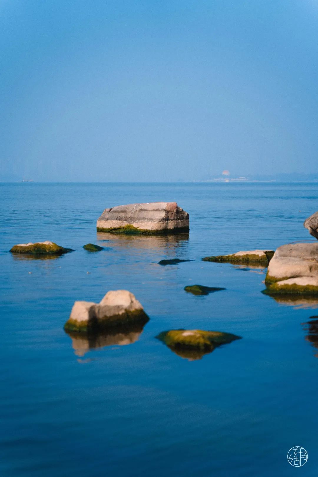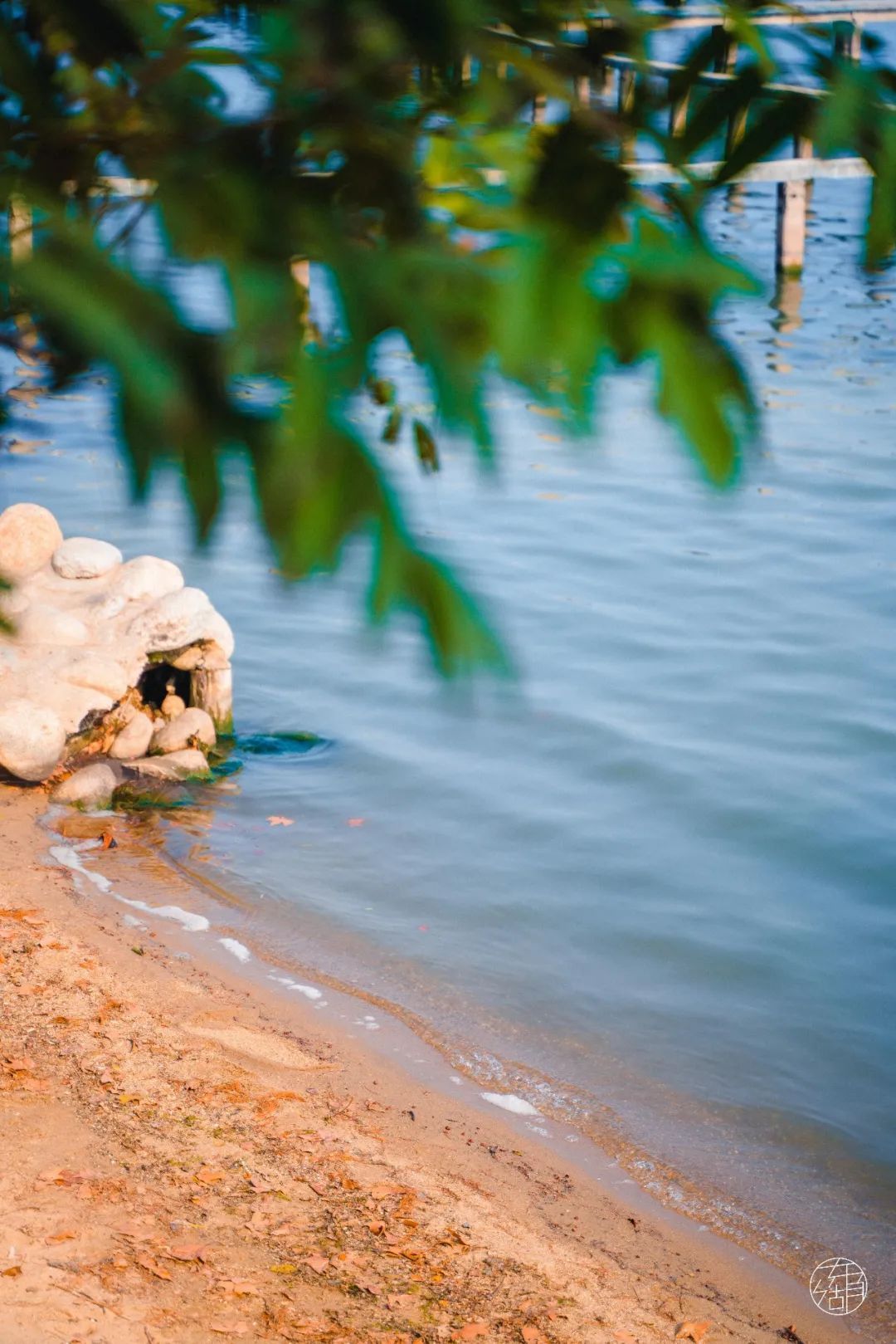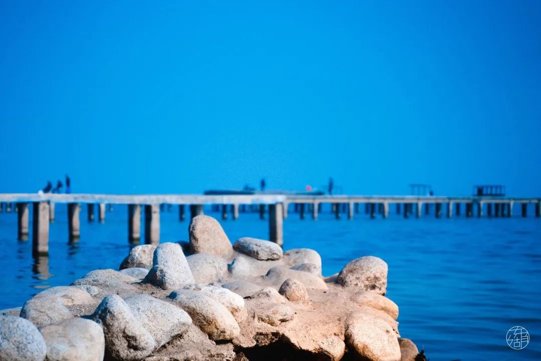 岸边凸起的石头与湖水相遇,被浪花拍打,此时遥望「海面」,颇有一种「东临碣石,以观沧海」的怀古之感。