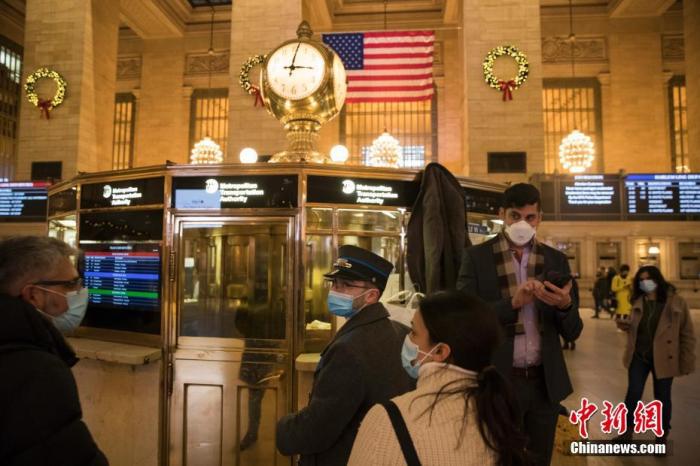 当地时间2021年12月29日,美国纽约中央车站的人们防护严密。中新社记者 廖攀 摄