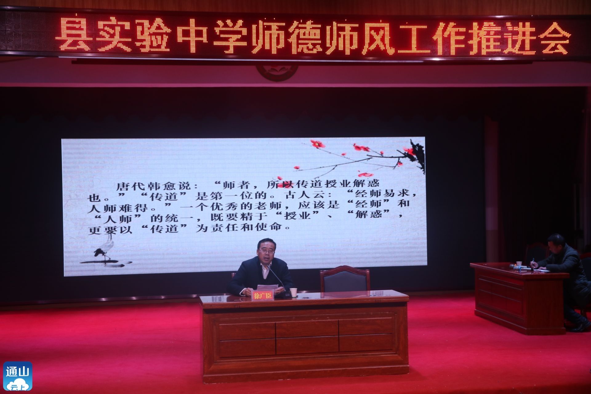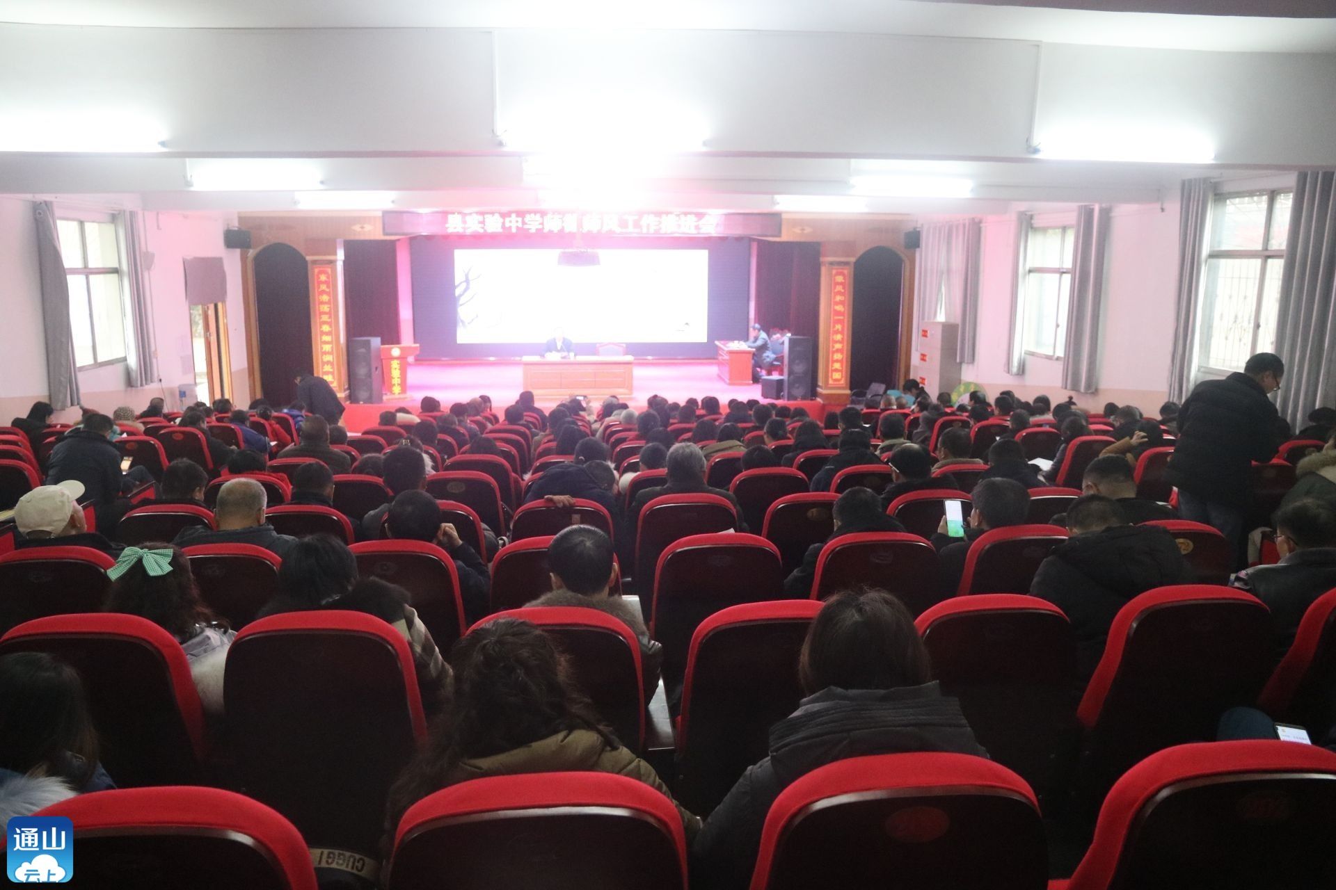 云上通山报道:(通讯员 黄细华)育人先树己,树己先立德,良好的师德,高尚的师风是做好教育的灵魂。为了树立好品牌,规范老师的从教行为,1月4日,实验中学再次召开全体教师师德师风推进会。