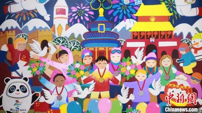 以冬奥会为主题的金山农民画。 徐明睿 摄