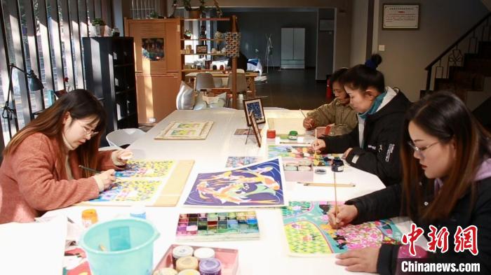 农民画画家们绘制农民画。 徐明睿 摄