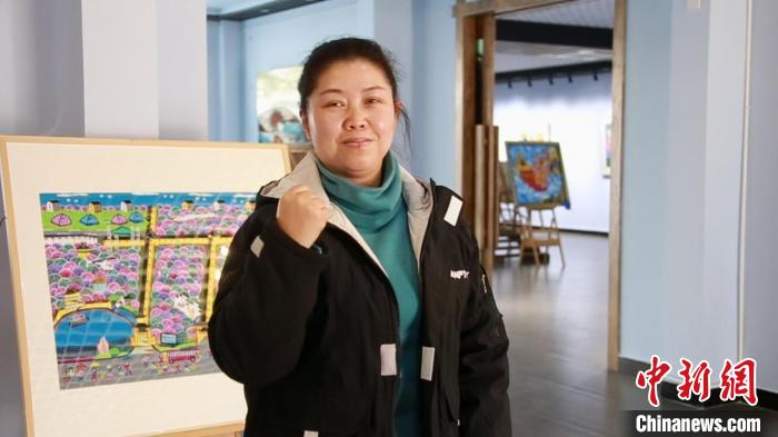 残疾人农民画画家毛华绘制金山农民画。 徐明睿 摄