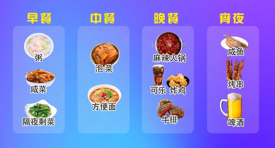 到了晚餐和宵夜又暴食一顿,这样不是过饥就是过饱,饮食不规律,营养搭配不合理,容易危害胃部健康。