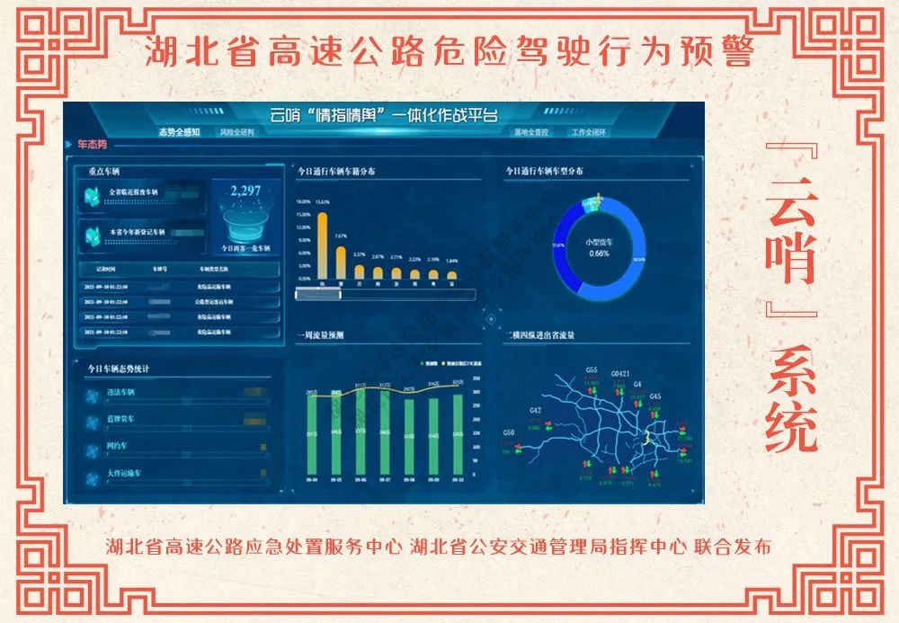 目前湖北高速交警已上线“云哨”“情指勤舆”一体化作战,通过监测“时段”“车籍”治疲劳、监测“车型”“习惯”纠异常,监测“路段”“数据”查违停,将风险隐患分类分级处置,对于低风险情况通过发送短信进行“唤醒”,对于疲劳、违停等高风险情况,直接拨打电话进行紧急干预避险,请接到“云哨”预警提醒的司机朋友,立即纠正危险驾驶行为,安全行驶高速公路。