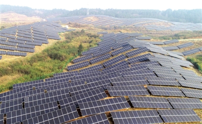 6日,在新建成的通山县大路乡东坑村光伏扶贫电站,一排排太阳能光伏发电板整齐地安装在山坡上。这是通山县易地扶贫搬迁重点产业发展项目之一,设计运营期限为25年,年均发电量1090万度,年均售电收入将达到850万元,年均可分配利润600万元。该项目的建成,将成为带动村民致富、增加集体收入的“绿色银行”。